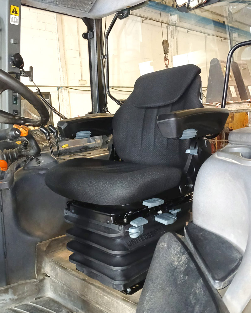 The customer was very happy with the their new seat, which not only refreshed the cabin of the tractor, but more importantly provided them more comfort and better support including features such as adjustable damper so the driver can harden or soften the damping depending on the terrain, 20°/20° swivel and fore/aft for additional absorption when coming to a stop whilst pulling trailers or attachments.