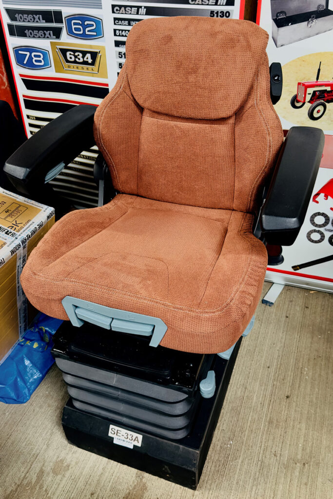 As can be seen in these John Deere applications, this Spanish customer selected Regain® ‘Hazel’ fabric to match the décor in his selection of John Deere tractors in keeping with the original brown interior.
